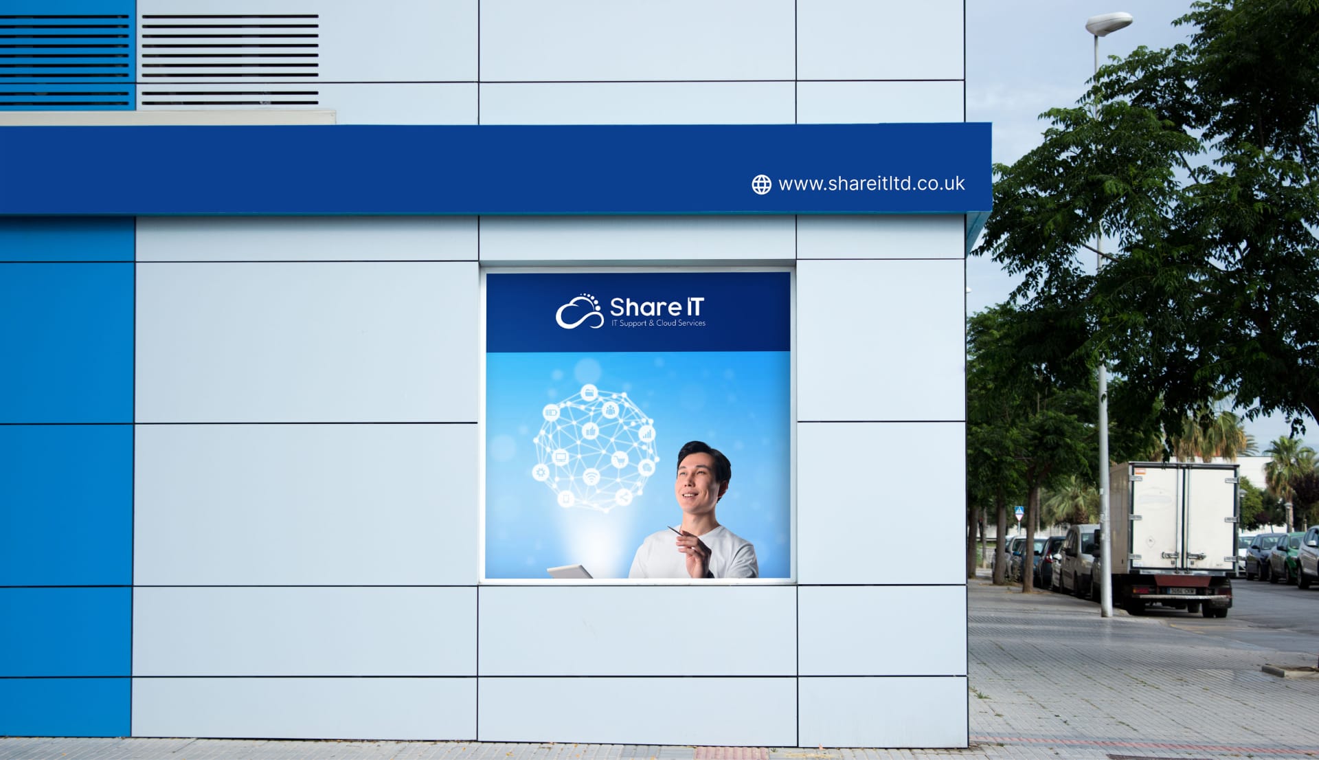 Infinity Loop: Integrated within the cloud is an infinity loop, signifying continuity, reliability, and the endless possibilities that your IT outsourcing services offer. This element highlights the commitment of Share IT to providing ongoing, seamless support and innovative solutions.