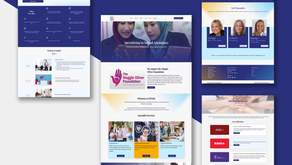 EWASS, a dedicated service supporting educational institutions, was looking for a modernised online presence. The old website lacked coherence and a clear user journey, which hindered communication about their bespoke offerings. The redesign aimed to enhance user experience, create a more organised and accessible site, and better reflect EWASS’s expertise in education welfare and safeguarding. This project involved revamping the site structure to deliver a professional, cohesive digital experience.