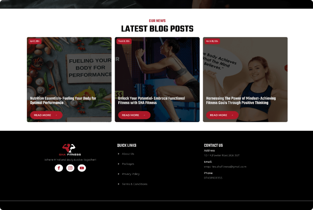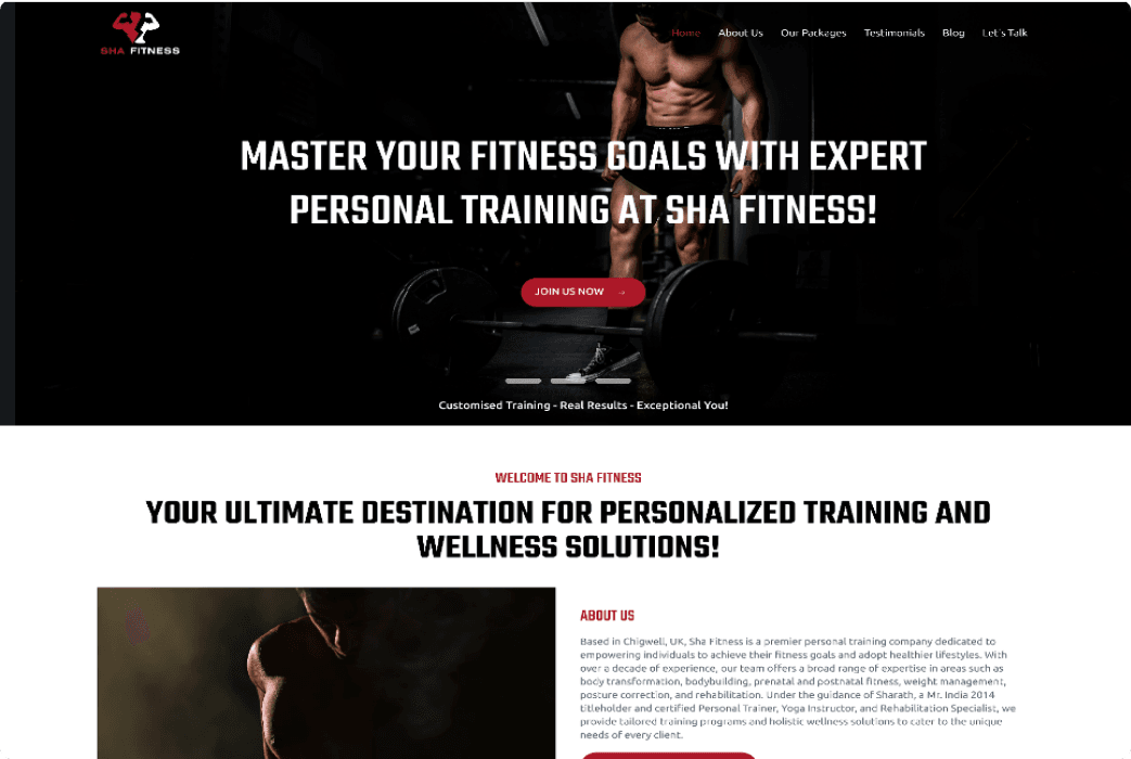 Sha Fitness, a personal training business based in Chigwell, UK, faced several challenges with their previous website hosted on Wix, including poor performance and limited customizability. The business required a complete website redesign, domain transfer, and enhanced SEO capabilities to improve functionality, user experience, and overall performance.