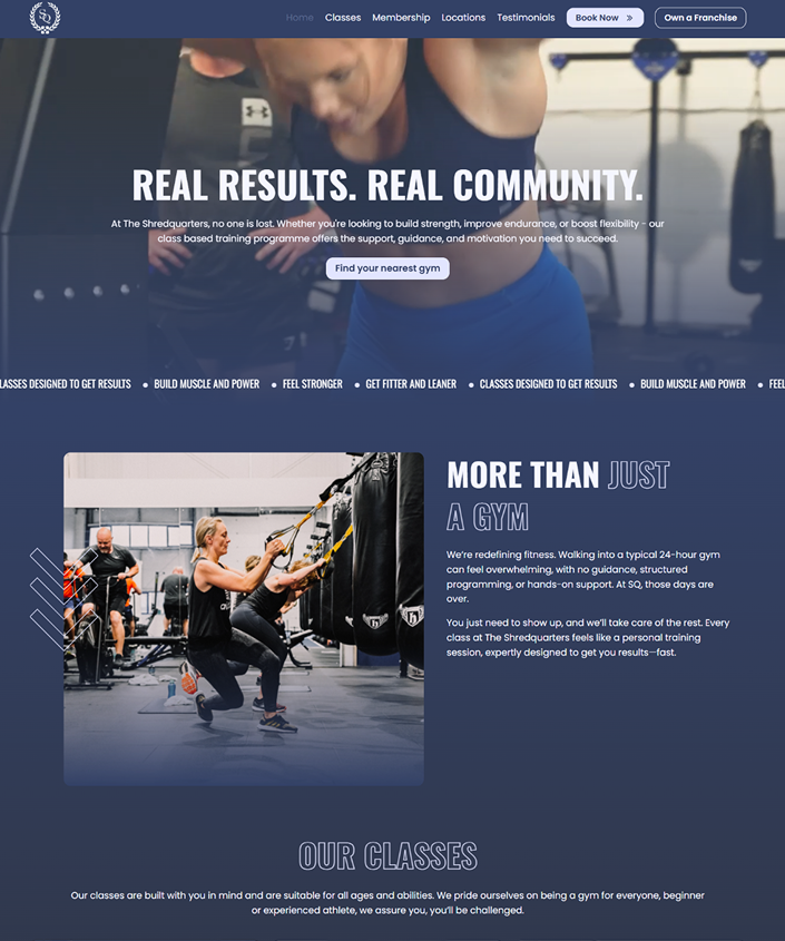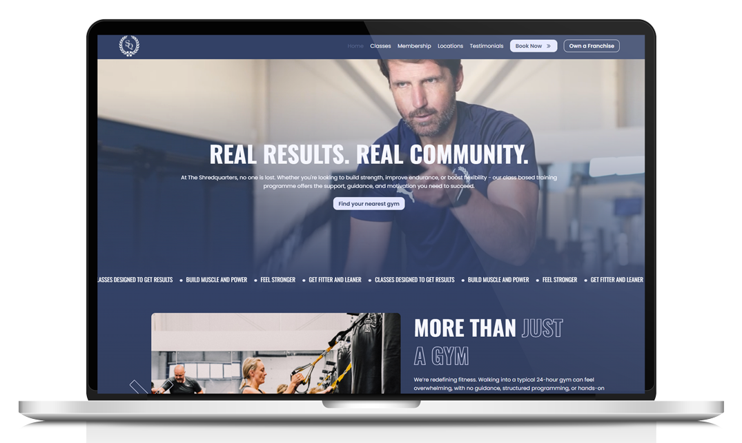 ShredQuarters is a fast-growing fitness franchise known for its high-intensity training programmes and expanding network of locations. Their previous WIX website was outdated, slow, and filled with broken features, making it difficult for franchise owners to manage effectively. We redesigned the entire site on WordPress, building a modern, visually engaging platform with dedicated one-page websites for each location. The new setup allows franchisees to easily update content using simple, customisable templates. We also upgraded their hosting to high-speed cloud servers, boosting website performance by 95%. The revamped website now supports business growth and enhances ShredQuarters’ digital presence.
